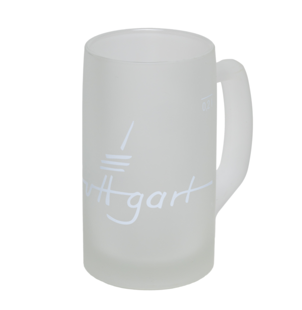 Seidel aus Glas, säuresatiniert mit „Stuttgart“ Aufdruck